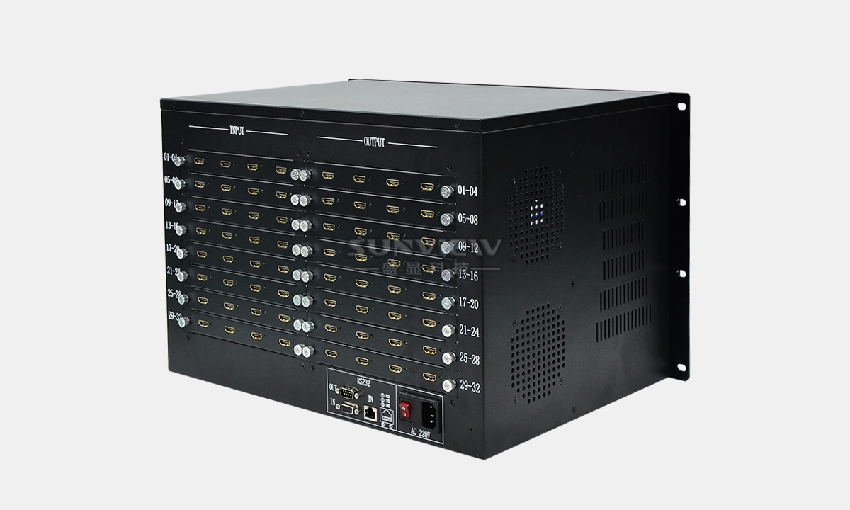 4K超高清矩阵是盛显科技研发生产的一款32通道输入输出的4K超高清分辨率HDMI矩阵产品,超高分辨率:(3840x2160),可连接 32 个不同的 4K HDMI 信号输入源, 32个不同的4K HDMI 接收显示设备。用户可以同一时间使用32个接收显示设备选择任意一个不同的信号输入源,32个显示设备可选择相同或不同的输出信号。可远程遥控或预先设置信号源输入顺序等多种控制方式,智能选择默认信号源智能跳过处于关机状态的输入端口。4K超高清矩阵在各类指挥中心、调度中心、分析中心、会议中心、视频会议、虚拟模拟中心、图像展示等等多信号源的AV工程得到广泛应用。