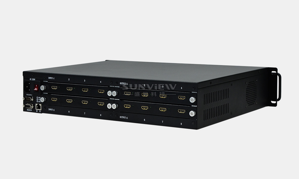 4K超高清矩阵是盛显科技研发生产的一款8通道输入输出的4K超高清分辨率HDMI矩阵产品,超高分辨率:(3840x2160),可连接 8 个不同的 4K HDMI 信号输入源, 8个不同的4K HDMI 接收显示设备。用户可以同一时间使用8个接收显示设备选择任意一个不同的信号输入源,8个显示设备可选择相同或不同的输出信号。可远程遥控或预先设置信号源输入顺序等多种控制方式,智能选择默认信号源智能跳过处于关机状态的输入端口。4K超高清矩阵在各类指挥中心、调度中心、分析中心、会议中心、视频会议、虚拟模拟中心、图像展示等等多信号源的AV工程得到广泛应用。