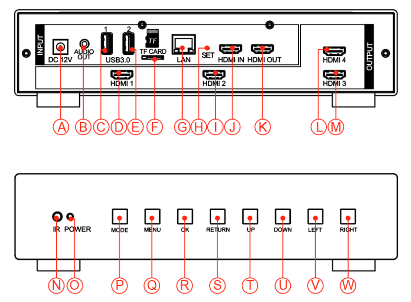 √ 支持2路USB3.0,用于多媒体素材播放和功能扩展(键盘和鼠标接入功能、U盘升级等)。
