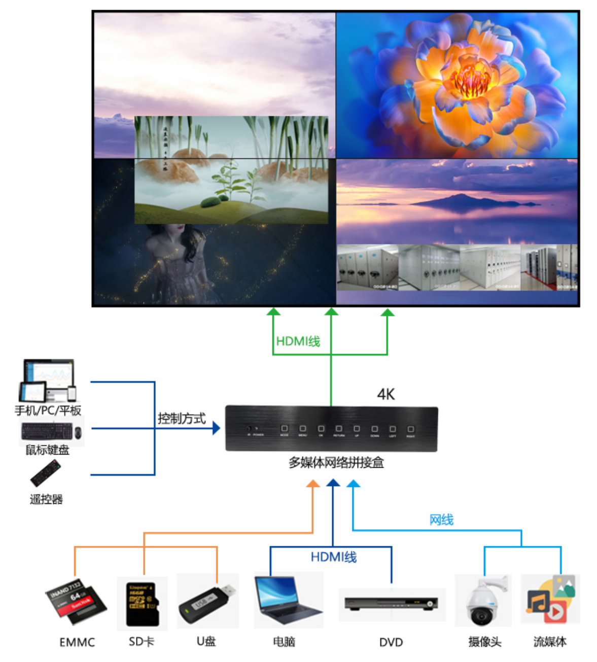 √ 支持1x4、4x1以内的横屏或者竖屏点对点拼接和组合模式拼接(软件需定制)