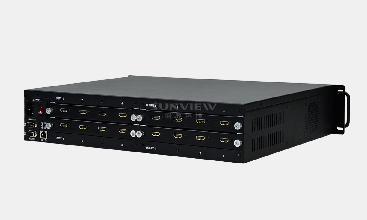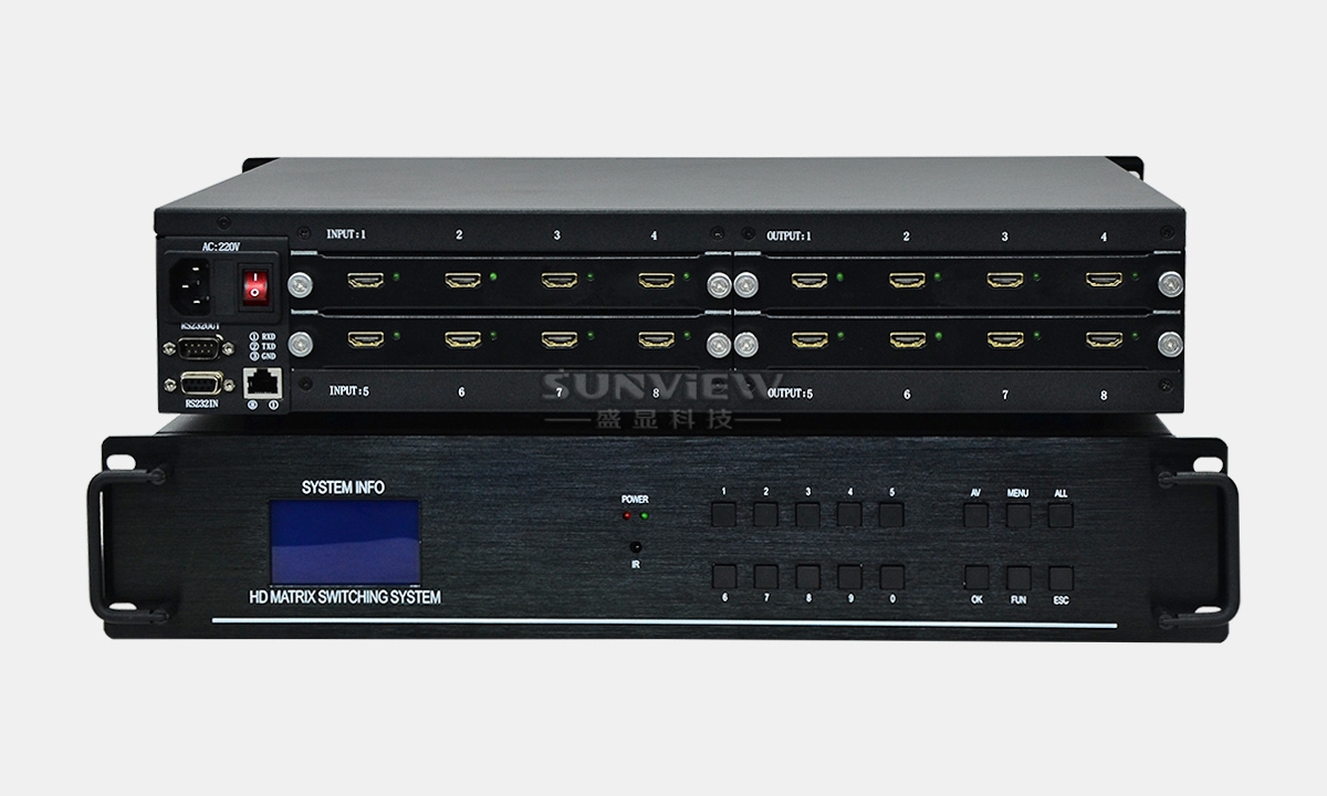 盛显8系列(型号:STH0808K、STH0804K、STH0408K)HDMI矩阵是盛显研发生产的8通道输入输出数字高清矩阵设备,可连接 8、4 个不同的 HDMI 信号输入源, 8 或 4 个不同的 HDMI 接收显示设备。用户可以同一时间使用 8 个接收显示设备选择任意一个不同的信号输入源,8个显示设备可选择相同或不同的输出信号。可远程遥控或预先设置信号源输入顺序等多种控制方式,智能选择默认信号源智能跳过处于关机状态的输入端口。