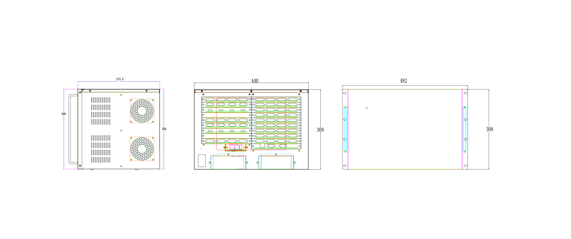 在有多个视频墙应用情况下,支持一个设备同时支持最多三种不同分辨率的视频墙。实现输入信号源在多个视频墙间的共享,经济应用。