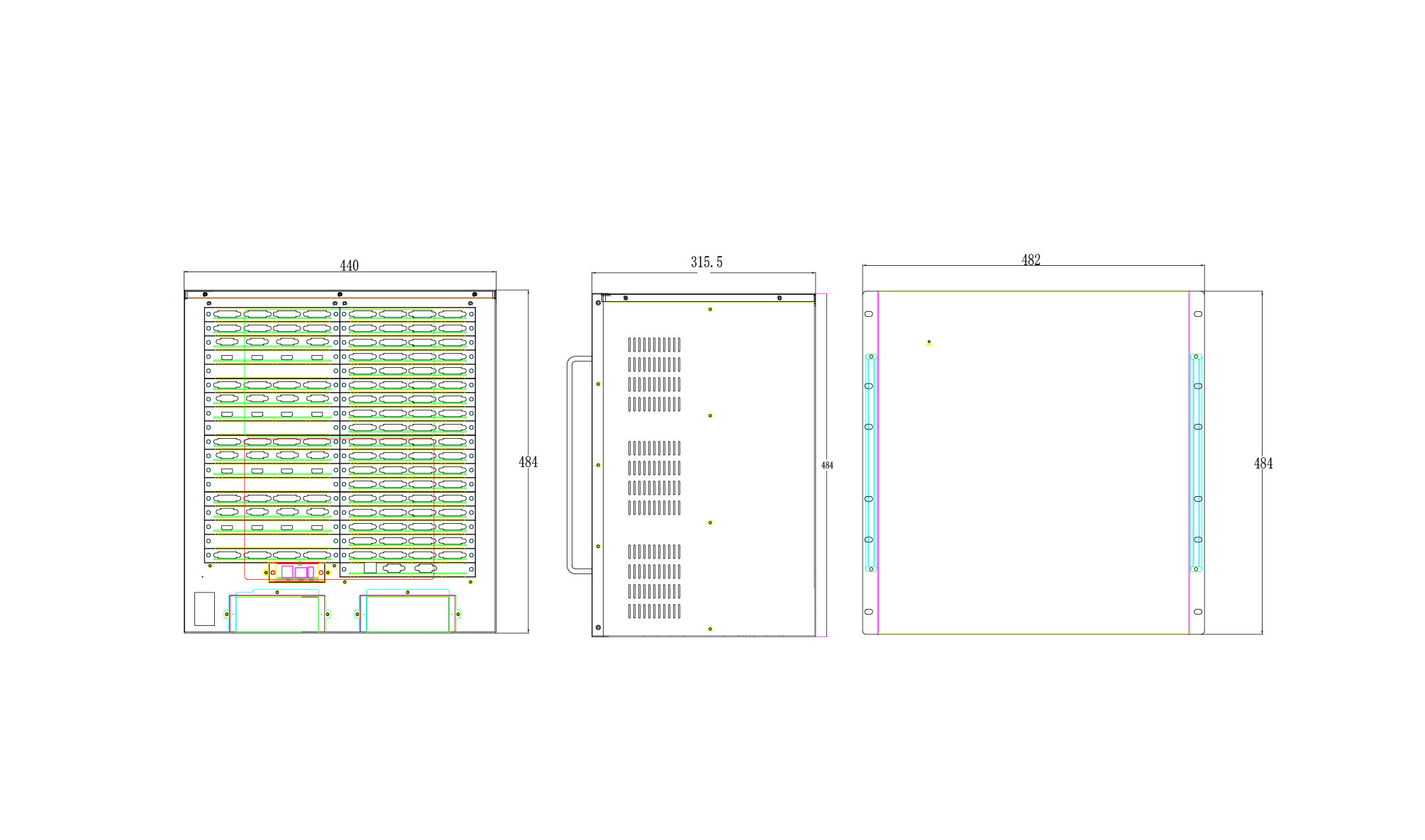 在有多个视频墙应用情况下,支持一个设备同时支持最多三种不同分辨率的视频墙。实现输入信号源在多个视频墙间的共享,经济应用。