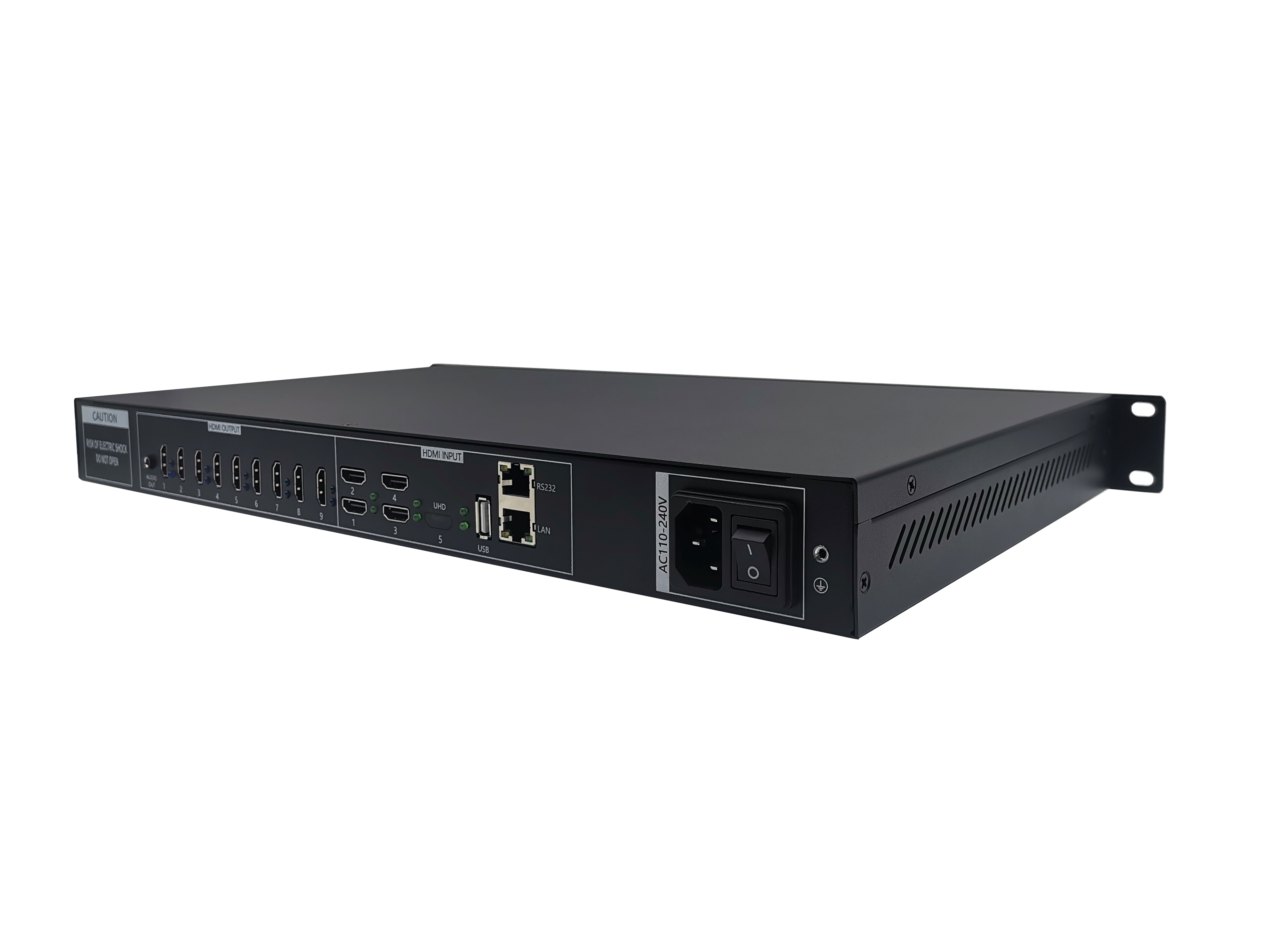 4进9出 LCD外置拼接处理器(龙卷风系列)是新推出的一款使用一体式设计、全新架构、UI设计的超高清视频信号采集与传输,视频图像解析度可达RGB色域中全4:4:4色度取样的多功能拼接处理器。其采用纯硬件FPGA+嵌入式架构,可为客户提供丰富的个性化功能定制。