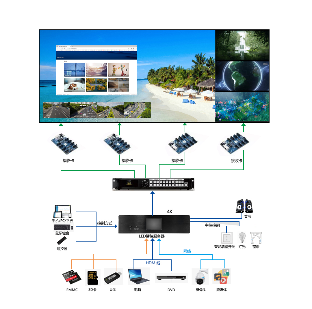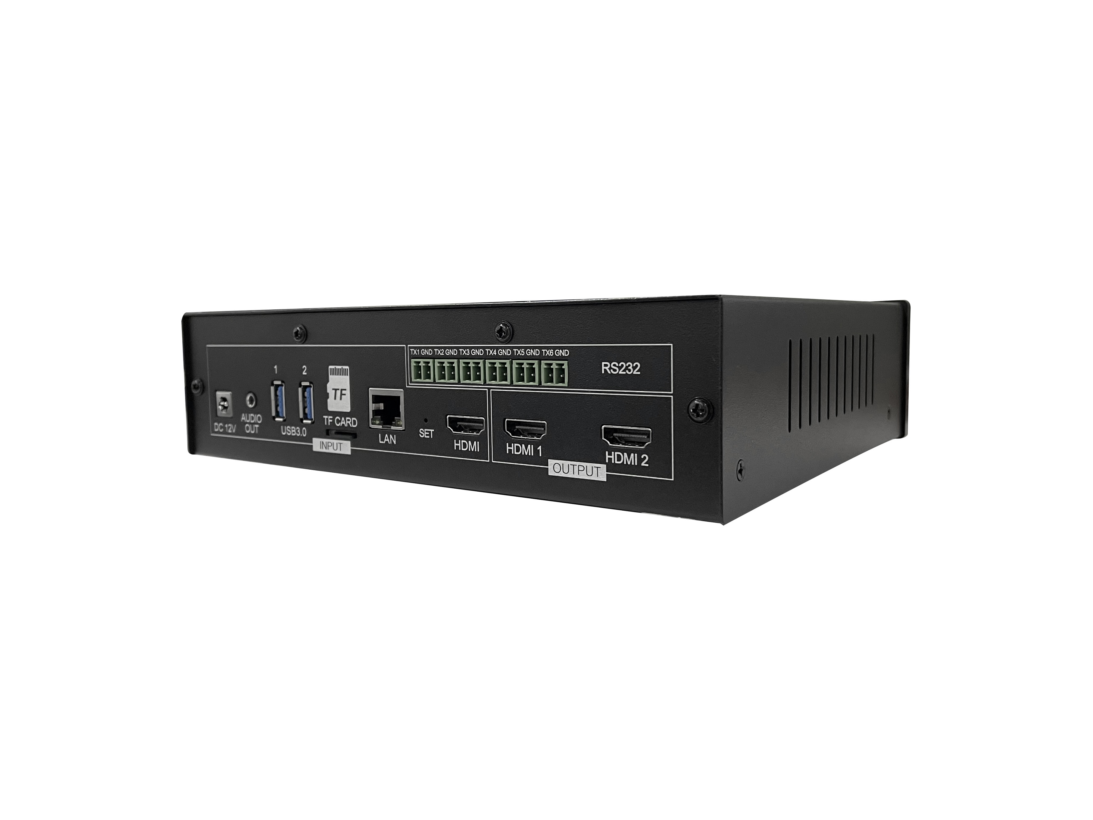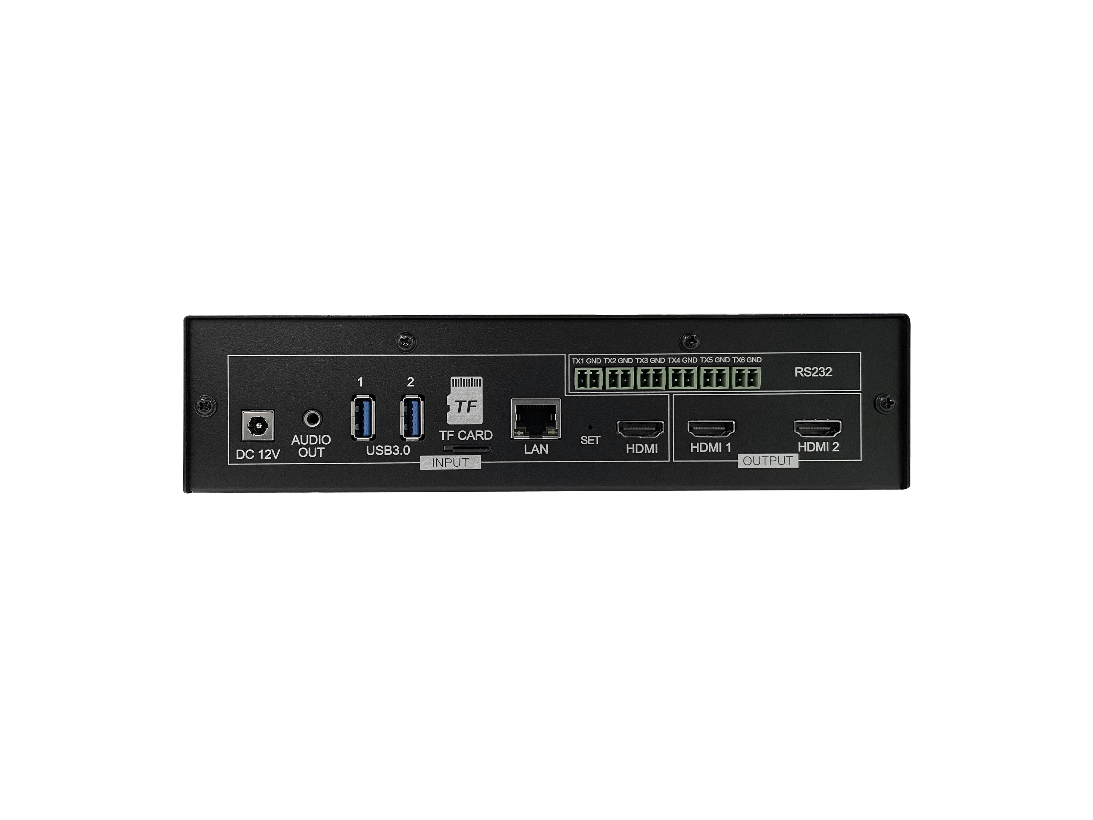 公司专为LED小屏显示推出的一款专业的MINI播控服务器,集多媒体播控、信息发布、集群管理功能和应用平台为一体,具备强大的交互和播放能力。 支持Windows、Mac OS、iOS、Android多平台终端控制,可实现多画面任意开窗、漫游显示。同时,针对不同应用场景需求,支持对接视频会议系统、监控系统、网络直播、本地媒体播放,提供2种场景模式(桌面模式、开窗模式),让文档演示、视频播放、远程会议,都能匹配最佳显示效果。 产品支持红外遥控、鼠标、平板、手机、电脑控制,可以广泛用于政企、酒店设计、医疗、教育等行业的商显场景。