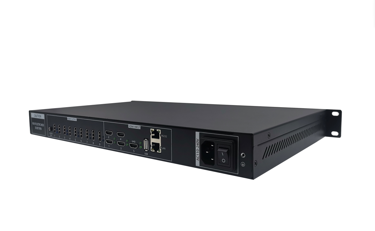3.支持9屏内点对点拼接模式(4×2、2×4、2×3、3×2、3×3、1x7等等)或者4K分辨率内等比不变形拼接模式(选配);