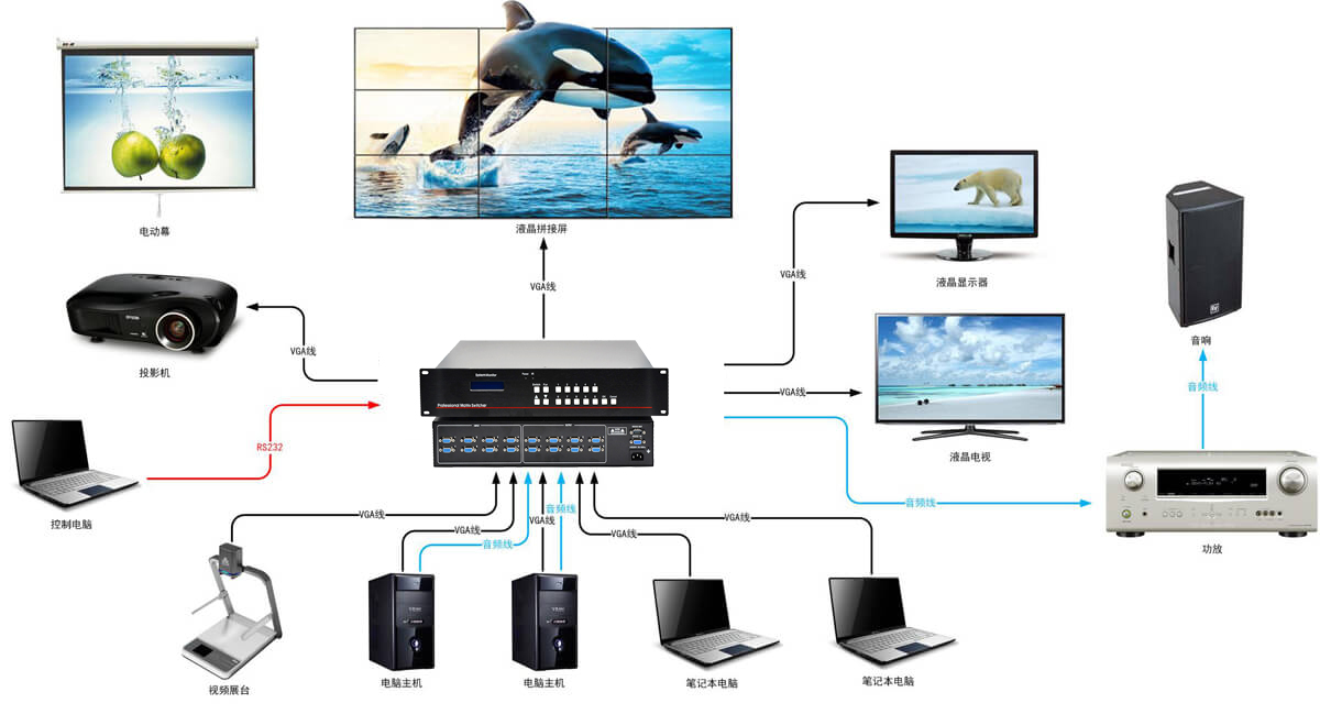 9.提供 RS232 通讯接口,控制协议简要易用。可高速处理 RS232 通讯数据,这样提高了 DLP 等显示设备信号切换的等待时间。