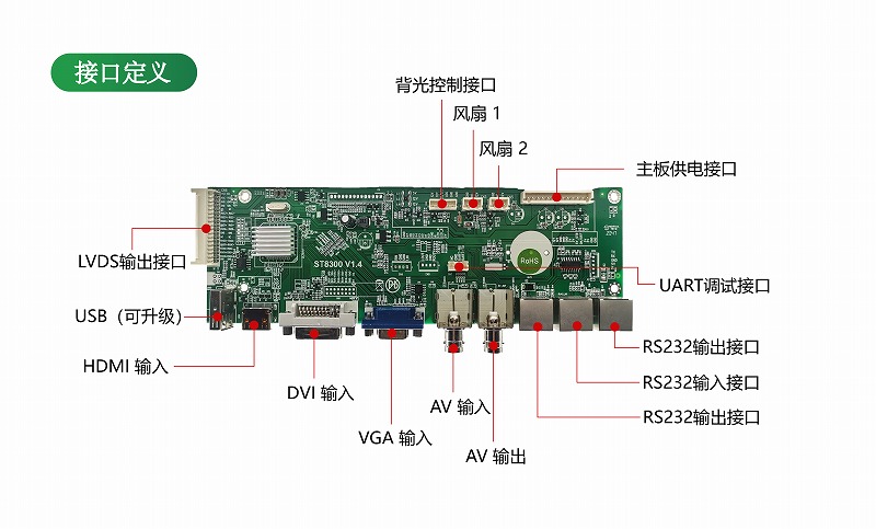 Ø集成多路视频信号源种类:HDMI、DVI、VGA、CVBS复合视频、USB硬盘播放。