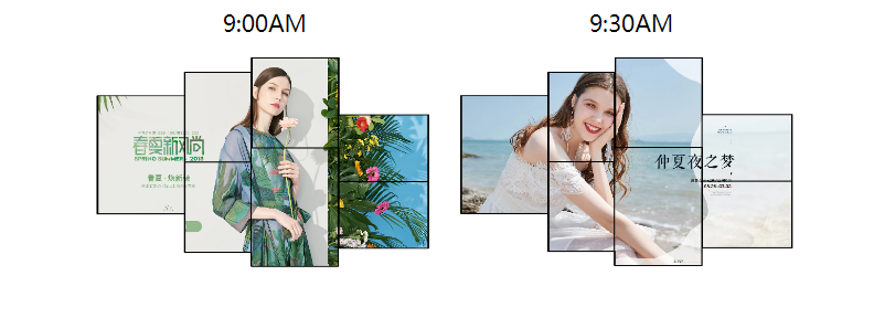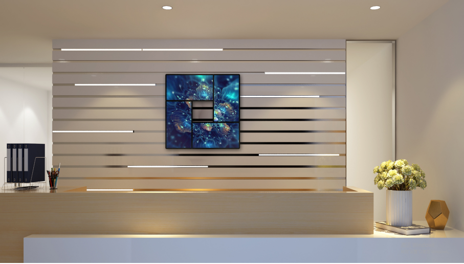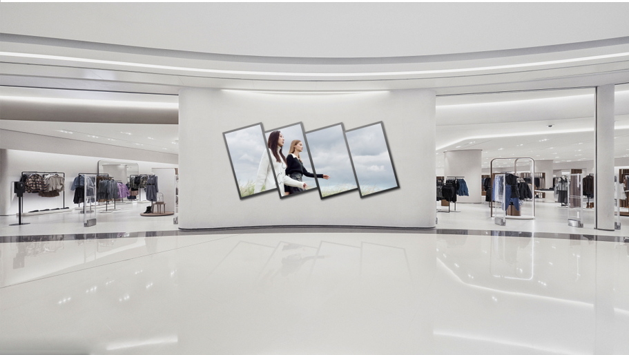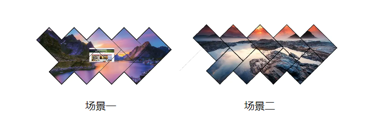 在商铺橱窗、展览展示、产品旗舰店、餐厅、高端会所等场所,为了实现时尚绚丽的显示效果并带来酷炫的视觉效果,一般采用异形拼接屏来播放精致的超高清产品宣传片、形象宣传片、广告或唯美风景等。相对传统拼接屏,异形拼接屏能给客户带来惊艳、新奇的视觉感受,提高拼接屏的展示价值和观赏价值。