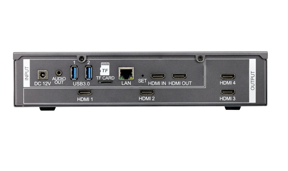 除4K HDMI采集外,还能够整合音视频文件、图片、web网页等各种媒体,在拼接屏上按照预设的布局进行展示。同时还能融合天气预报、时钟信息、飞行字幕等日常信息的显示。