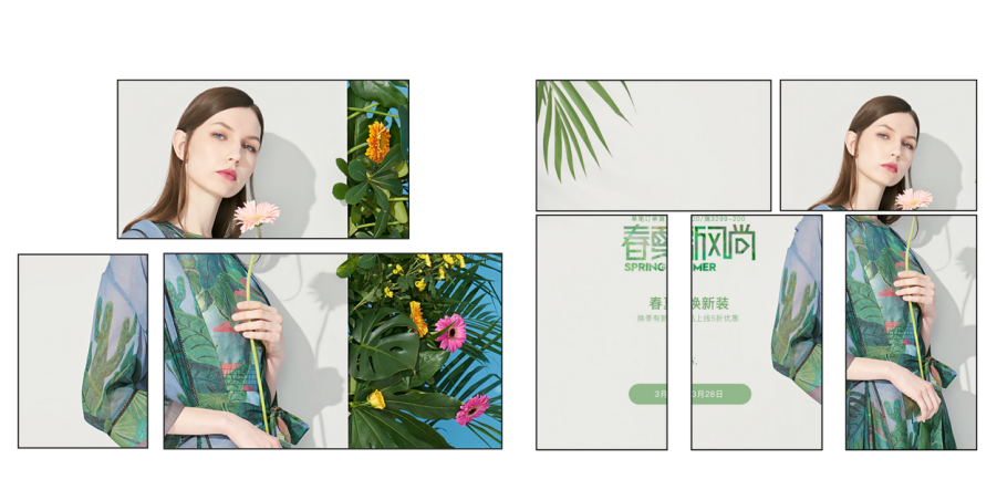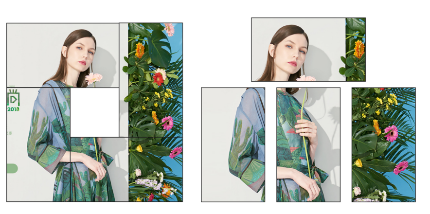 商铺橱窗、展览展示、产品旗舰店、餐厅、高端会所等场所为了实现时尚绚丽的显示效果并带来酷炫的视觉效果,一般采用异形拼接屏来播放精致的超高清产品宣传片、形象宣传片、广告等。相对于传统拼接屏来说,异形拼接屏能给客户带来惊艳、新奇的视觉感受,提高拼接屏的展示价值和观赏价值。