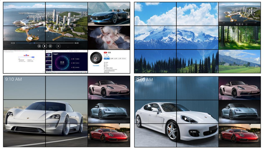 在某些场合的拼接屏需要达到竖屏安装的要求,可以通过播控服务器实现竖屏组合播放显示,其次图片、视频及其他媒体信号支持0°、90°、180°、270°实时旋转以及拼接屏竖屏显示效果。