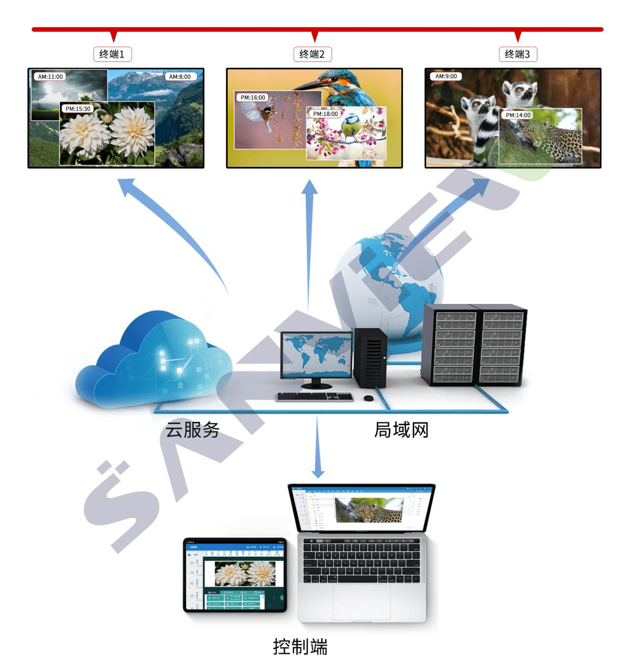 可通过PC或Pad设置每台投影融合器的开关机时间、显示画面的定时切换、第三方设备的定时控制等,实现整套系统的智能化、自动化运行管理。