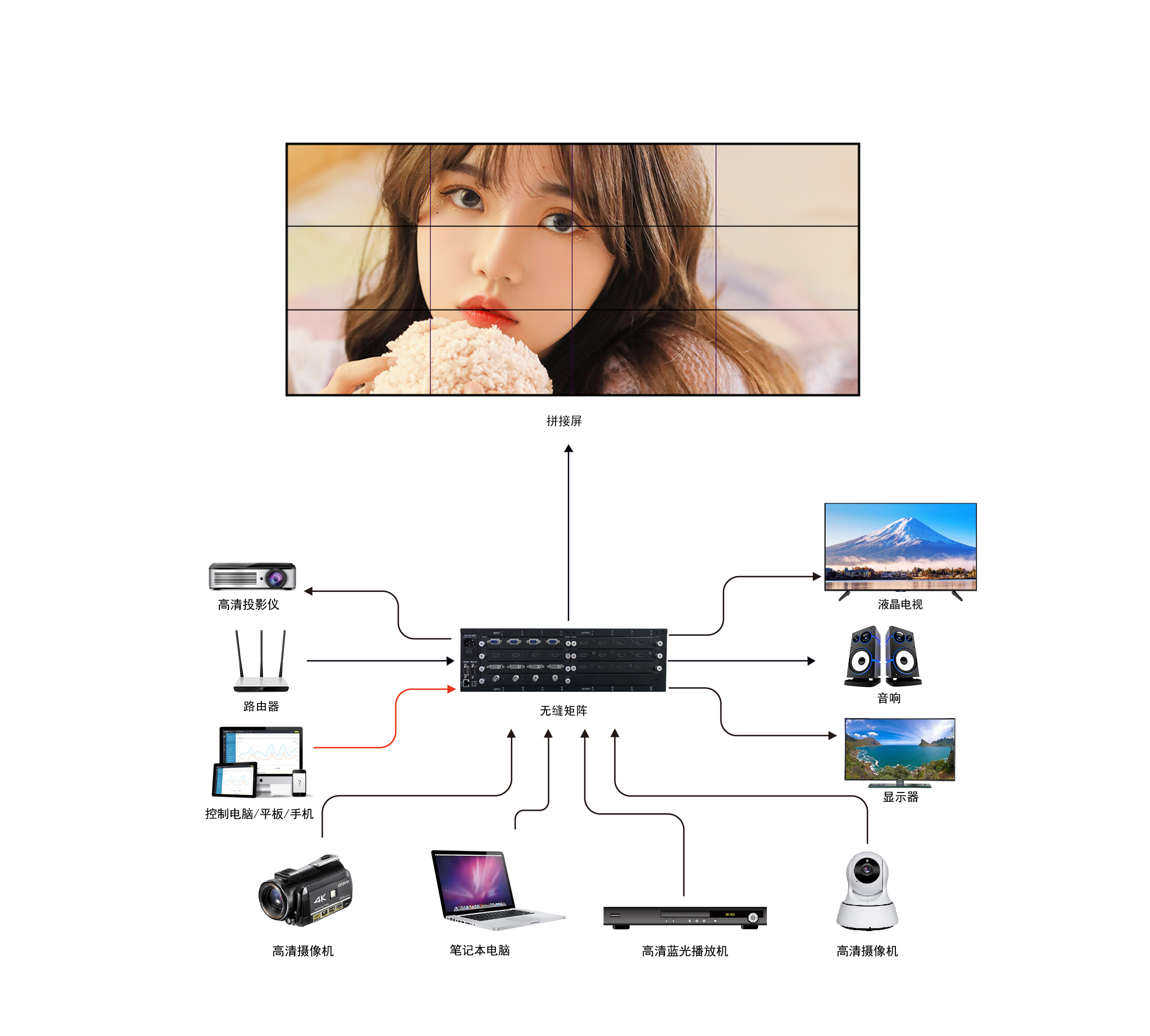 所有输出接口切换不同信号源时无黑屏,真正达到了全无缝切换。