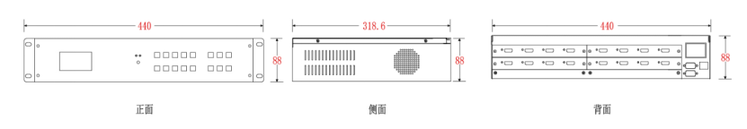 所有输出接口支持各种模式的拼接组合,可以实现大屏的拼接功能,实现整幅图像的拼接显示或者局部拼接显示。