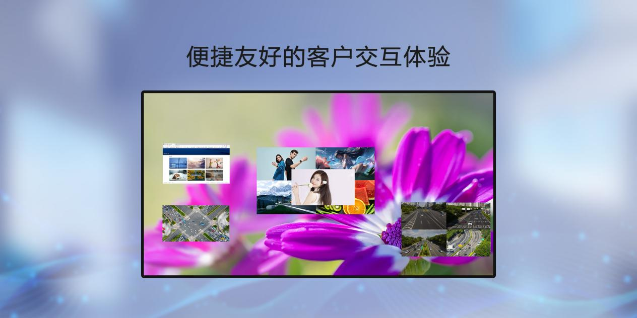 8.便捷友好的客户交互体验。各种音视频文件、图片、Web网页以及4K HDMI采集、网络接入信号能够以窗口的形式动态、实时地显示,并可以任意跨屏漫游、放大、缩小及混合叠加。